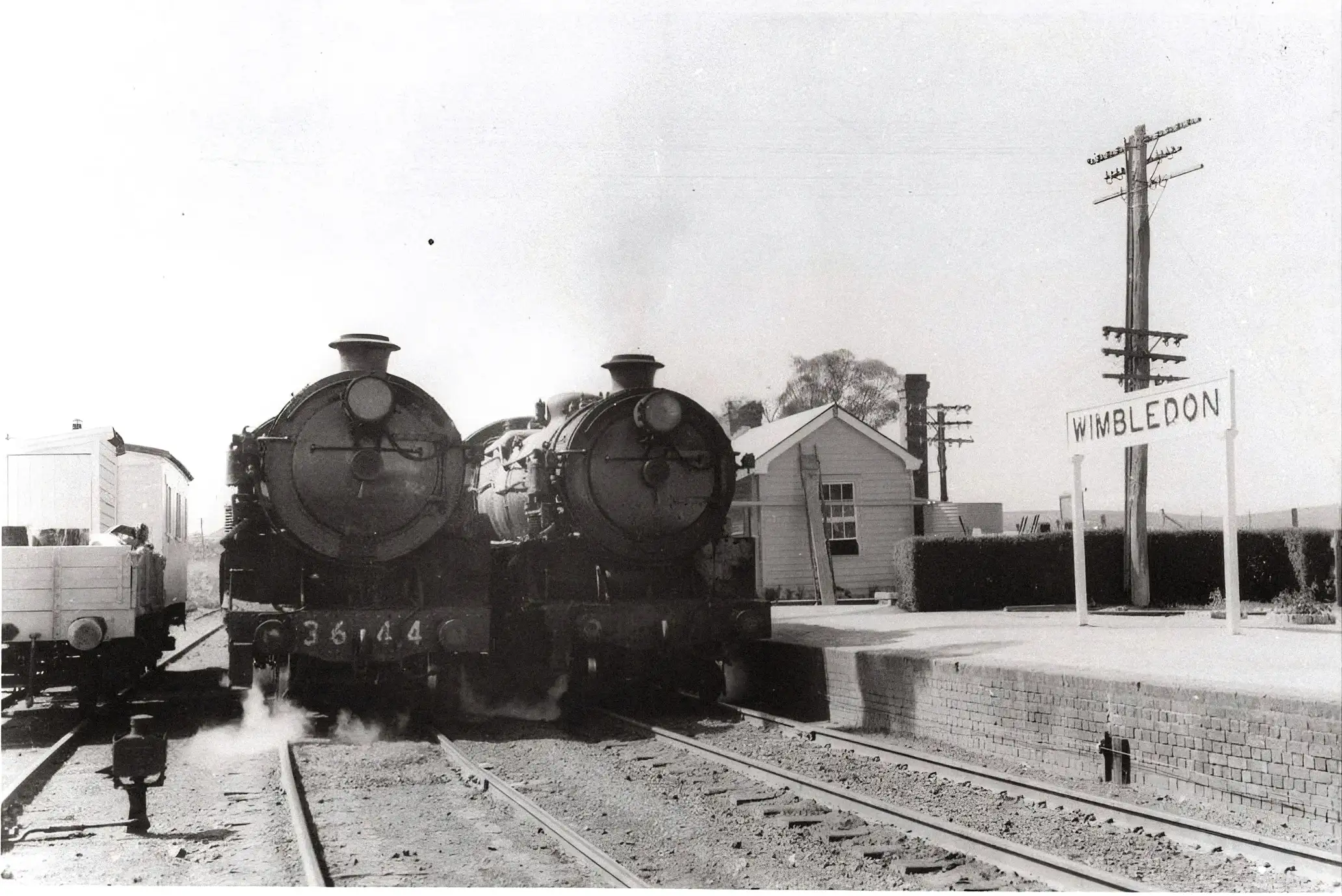 Two 36 class locomotives at Wimbeldon Station, 1964. NSW State Archives