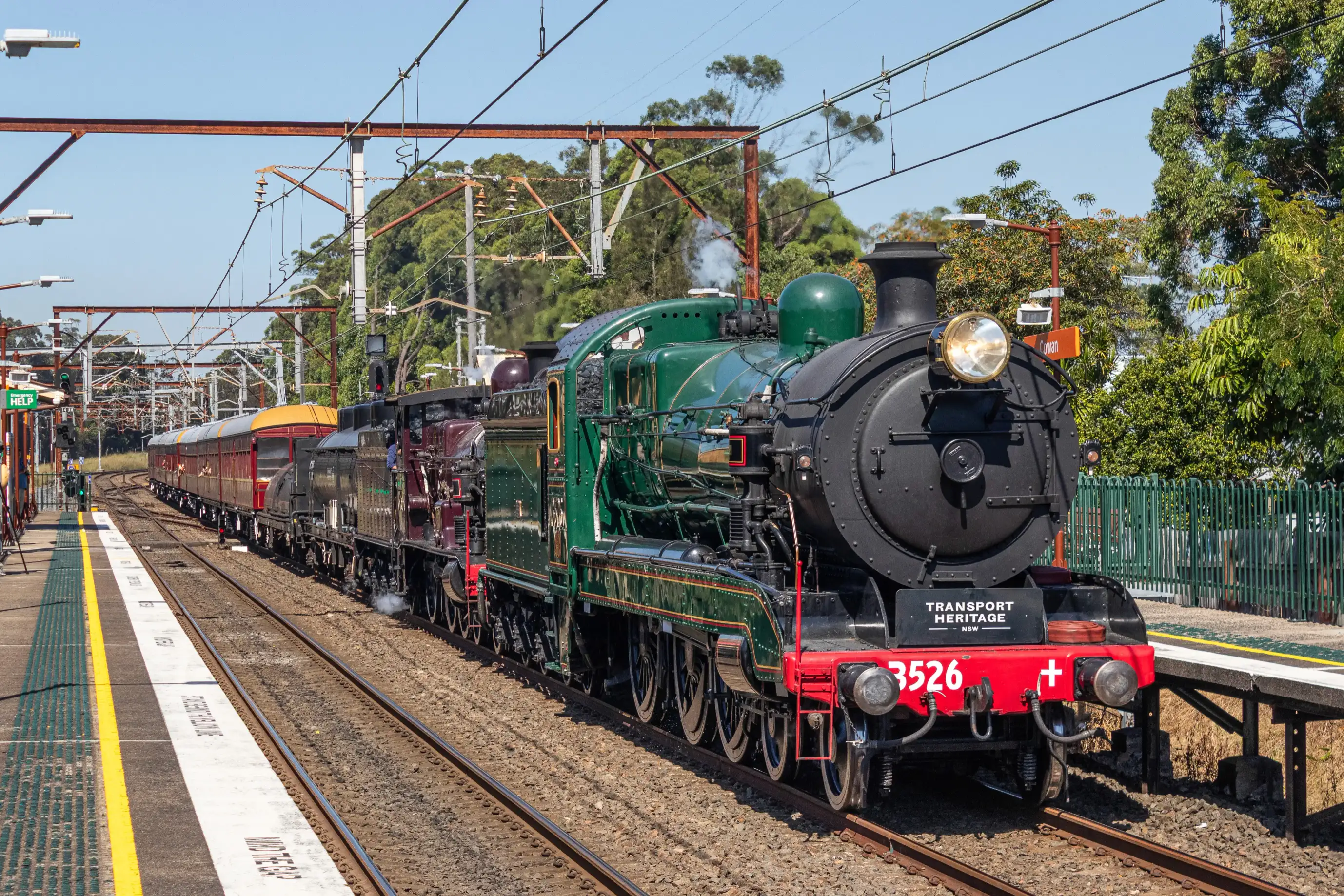 Travel between Maitland and Concord West behind heritage locomotives 3265 and 3526, as they steam along the beautiful Central Coast-Newcastle and Hunter Valley Lines express to Maitland.