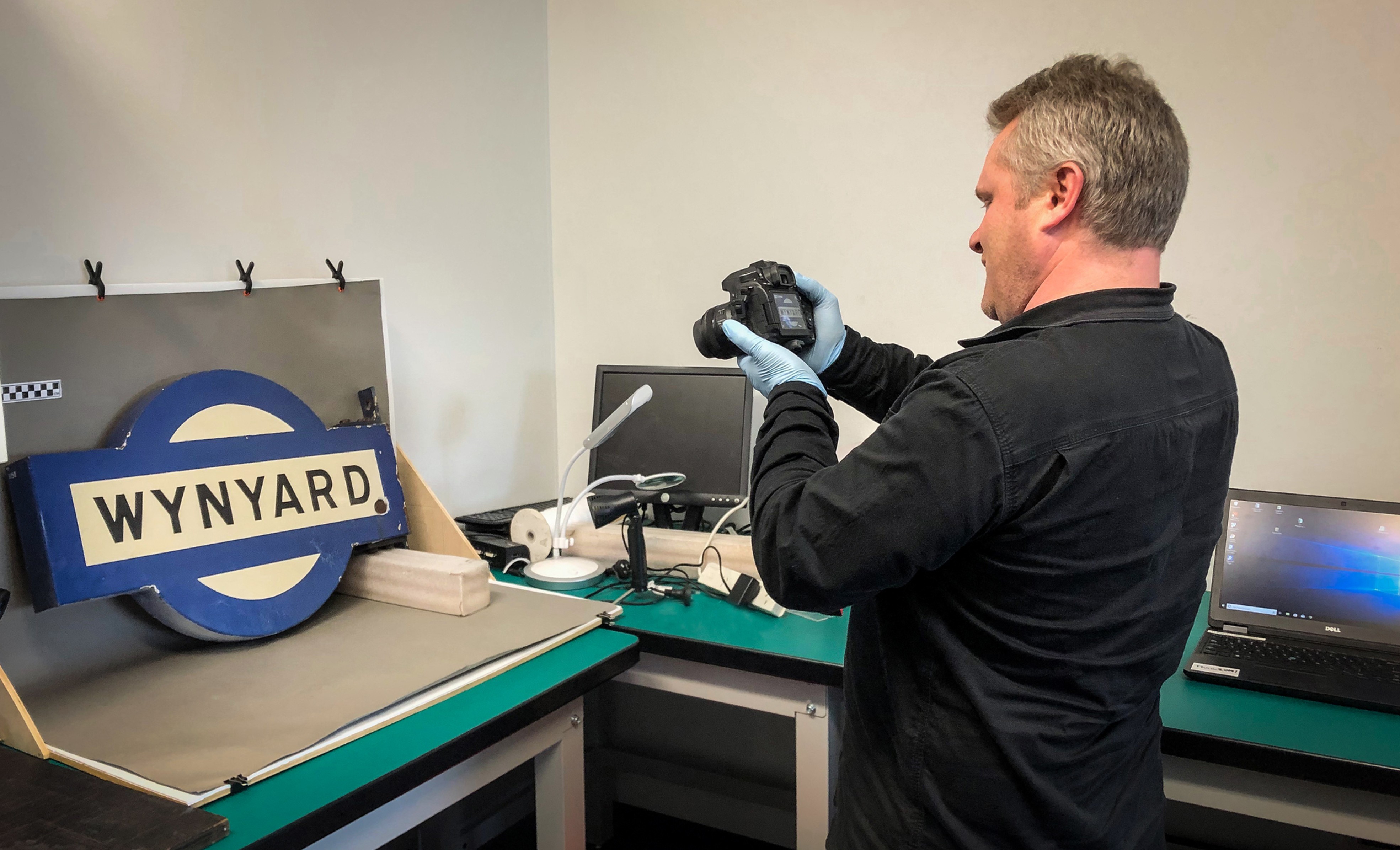 Chris Fielder, Collections Officer, cataloguing at the NSW Rail Museum.