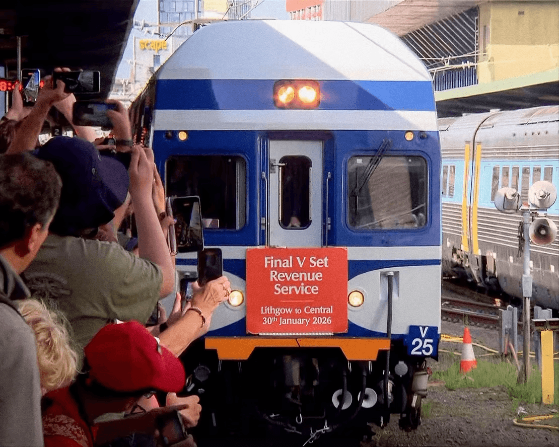 Transport Heritage NSW congratulates Sydney Trains on the final timetabled V set passenger service this morning, marking the end of an era for one of the most iconic and enduring train fleets in the history of the New South Wales rail network.